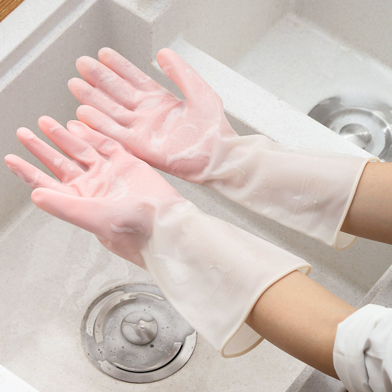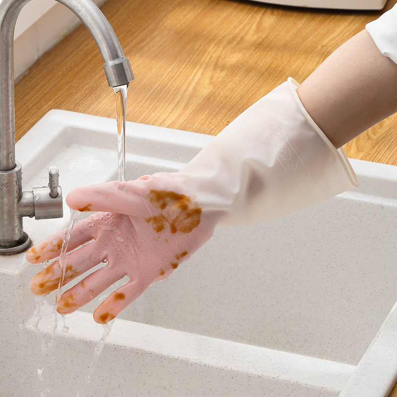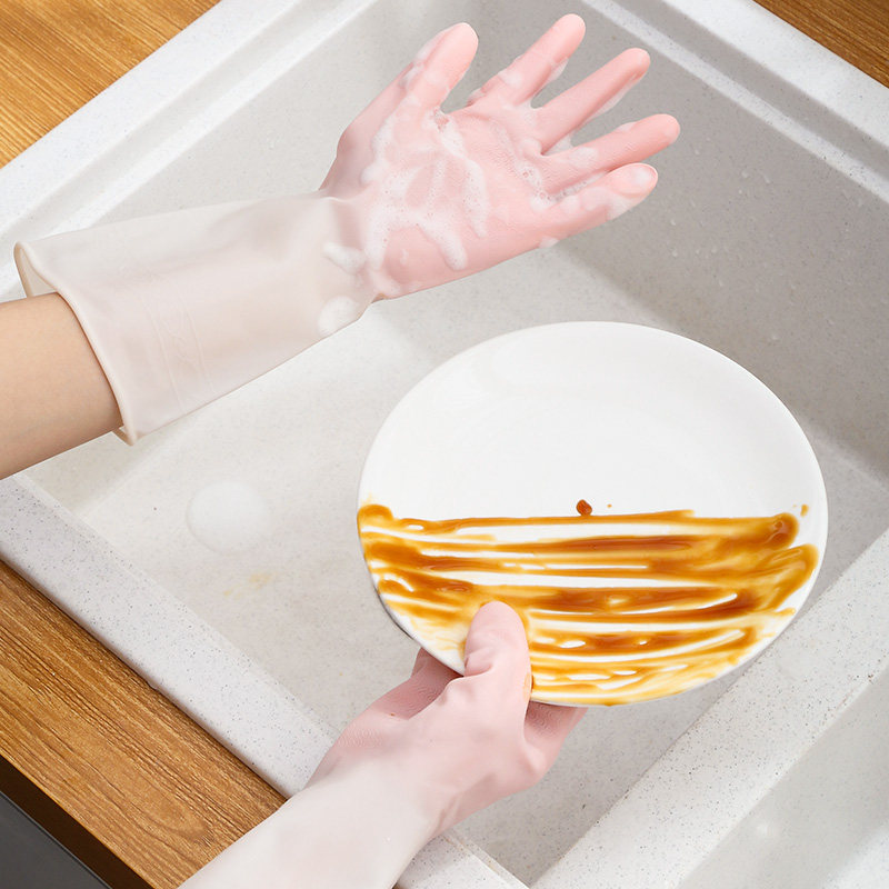 Plush kitchen household dishwashing gloves women winter work rubber cleaning brush bowl waterproof durable housework laundry