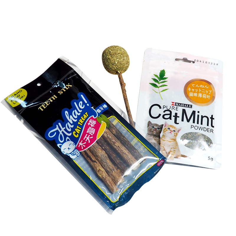 A packet of cat mint a bag of lollipop a wooden sky-mint + cat mint + lollipop three set with arbitrary combination Three wooden sky-sky + paper ball taste fresh cat mint + lobby ball taste fresh paper ball