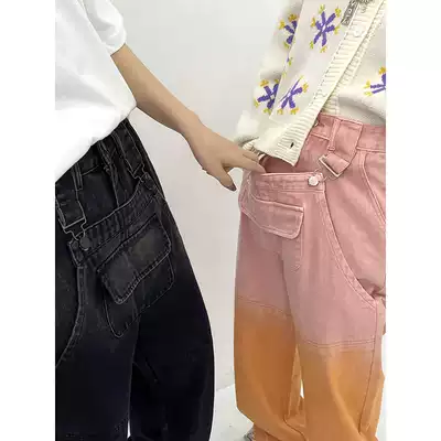 Sai Xiao lazy pink design sense jeans women's 2021 new straight loose sweet cool pants high street ins tide
