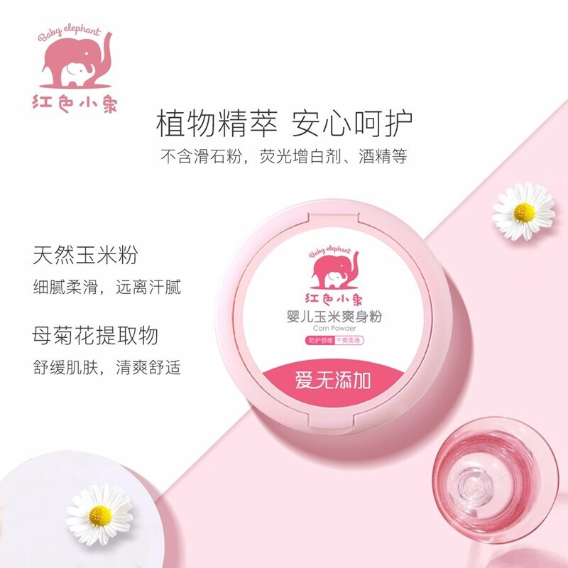 Red baby elephant talcum powder baby hot prickly heat powder newborn baby special natural corn puff