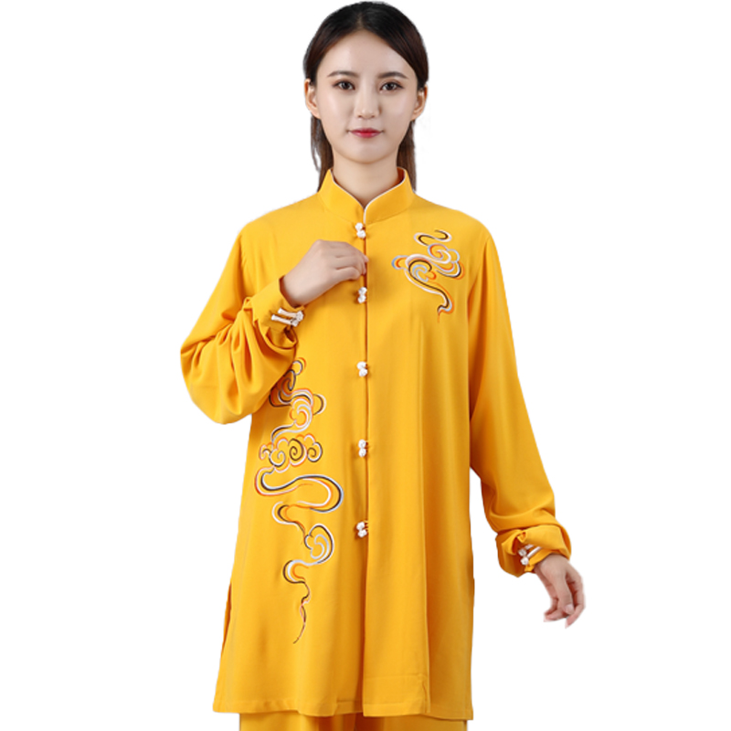 New Tai Chi Suit Women's Male Embroidery Taijiquan Taijiquan Yellow Martial Arts Practice Performance Wear and Flight Comfort Spring Summer