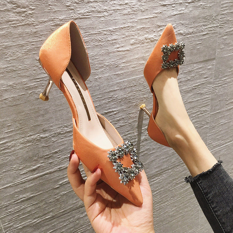 Pointed-toe temperament single shoes women's summer all-match red high-heeled shoes women's 2021 new wedding shoes Xiuhe wedding dress two wear