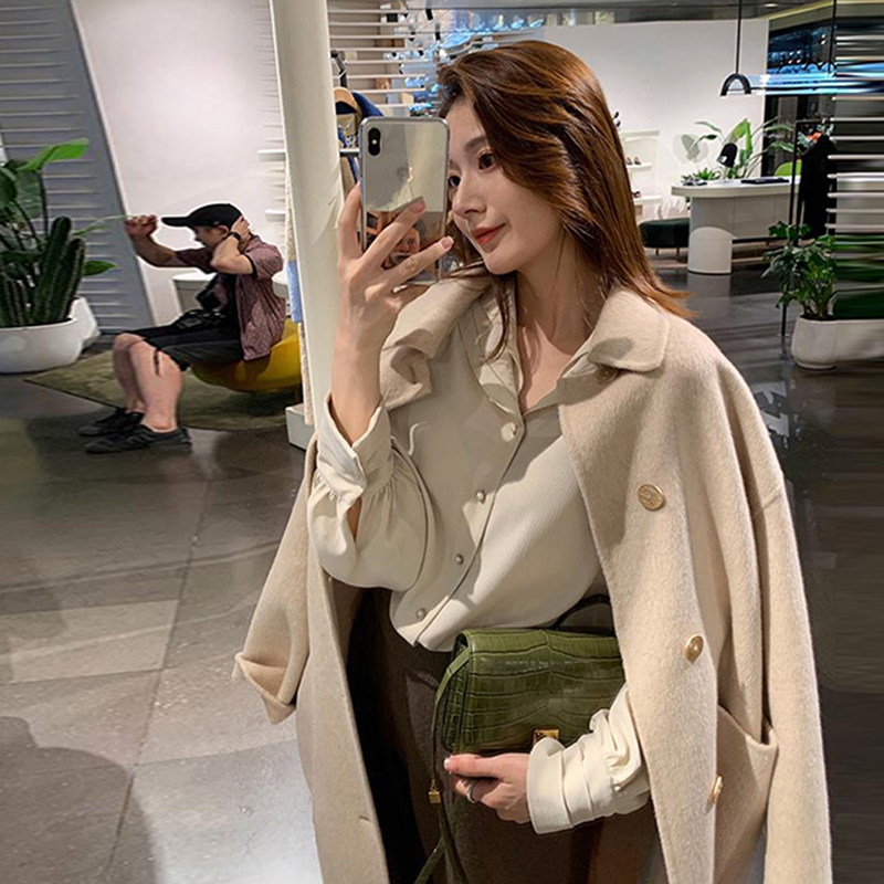 Day Department Double-sided cashmere Grand coat 2022 Autumn winter new Hepburn lady with a long version of wool temperament suede jacket