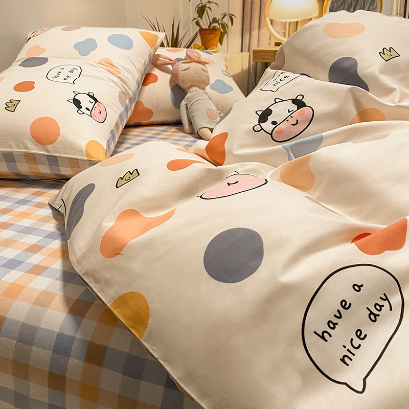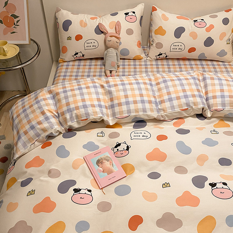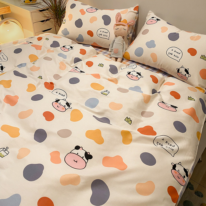 (Home position) Milk cute cow cute cotton 3 four-piece set single double bed single quilt cover TY