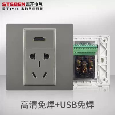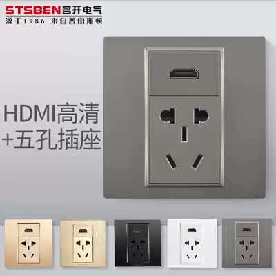 Mingkai Electric 86 type concealed three-hole power supply with HDMI panel dark gray 4K high-definition HDMI five-hole socket