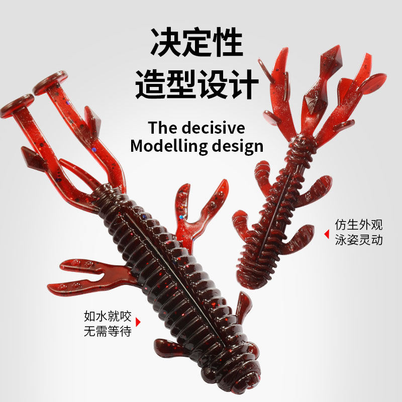 Floating water shrimp type Lua soft bait t tail black pit competitive largemouth bass mandarin fish specializes in killing the common bait of the light seawater