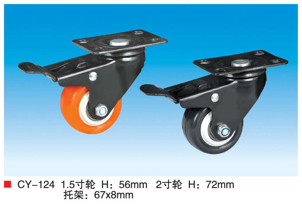 2 Inch Double Bearing Silent Caster CY-124 Polyurethane PU Pulley Brake Universal Wheel Furniture Caster With Lock