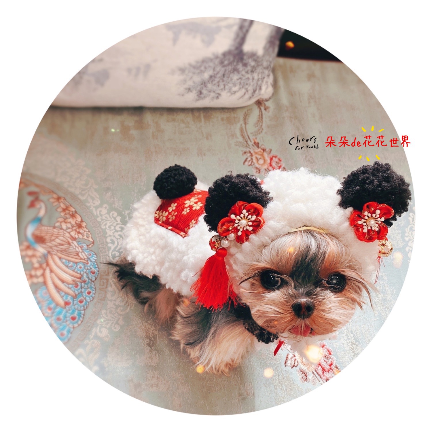 J Pet Cat Dogs year clothes Yorkshire Teddy Little Ma Happy Chinese New Year's Spring Festival Red Panda Panda Change Suit