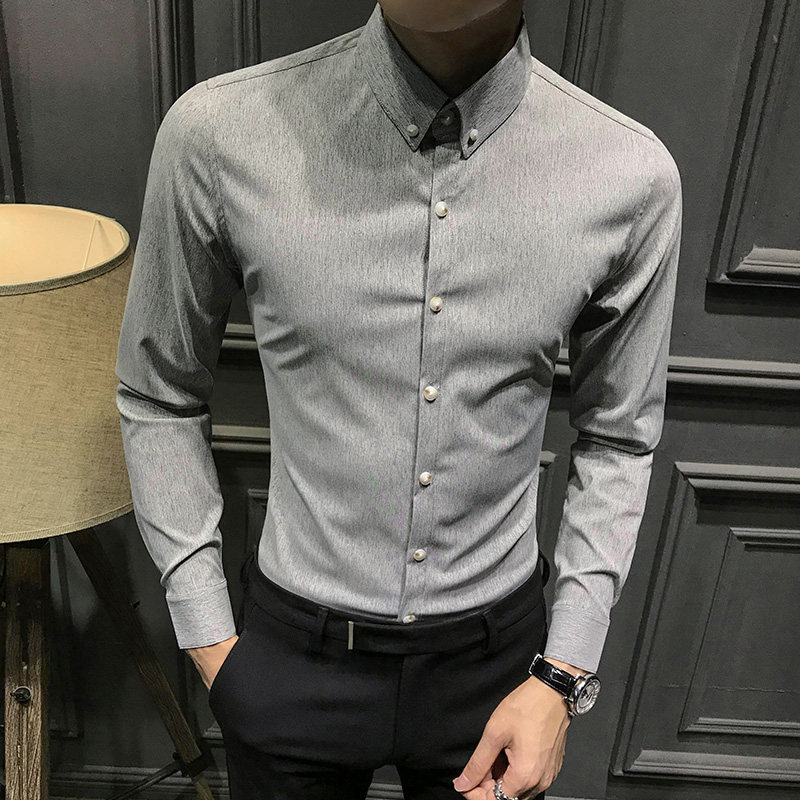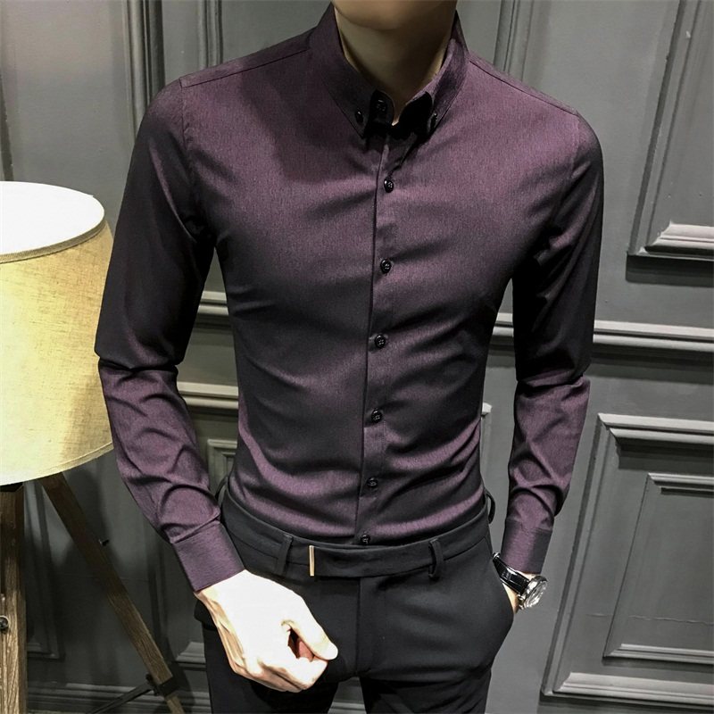 Rich Bird Shirt Men's Long-sleeved Korean Style Slim Trendy Non-ironing Handsome Plus Velvet Warm Casual Business Youth Shirt