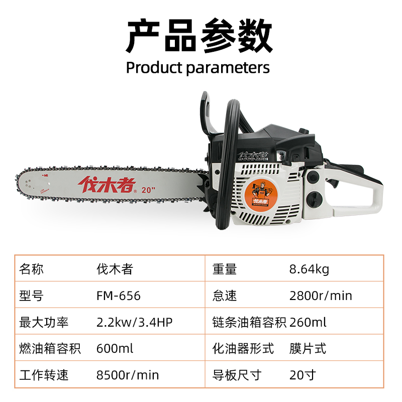 Loggers 656 oil saw high power original fit German logging saw petrol saw chain saw 20 inch tree cutting machine