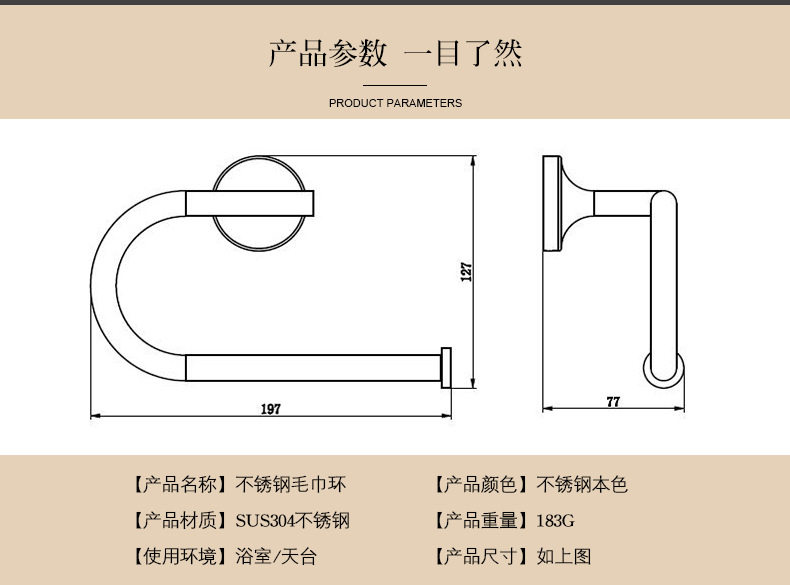 New German high-end 304 stainless steel bathroom towel ring toilet hardware pendant hanging towel rack face towel