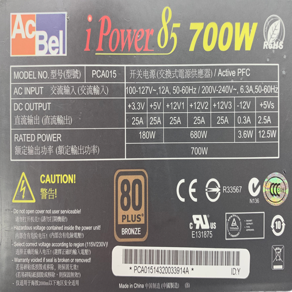 AcBel Kangshu 350W 400W 500W 600W 700W Electricity Mute Power Supply for Desktop Computer