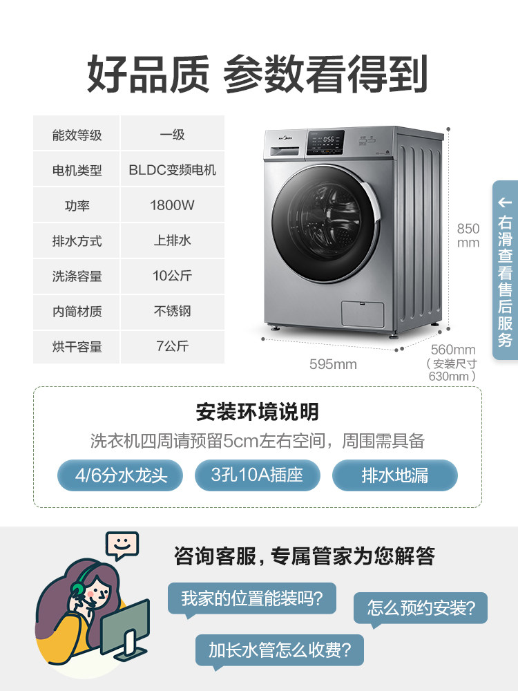 Midea Beauty MD100VT13DS5 10kg Kg Fully Automatic Drum Washing Machine Frequency Conversion Wash