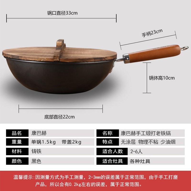 Kangbach forged old iron pot traditional ancient method non-stick frying pan Zhangqiu handmade cooking pot gas induction cooker universal