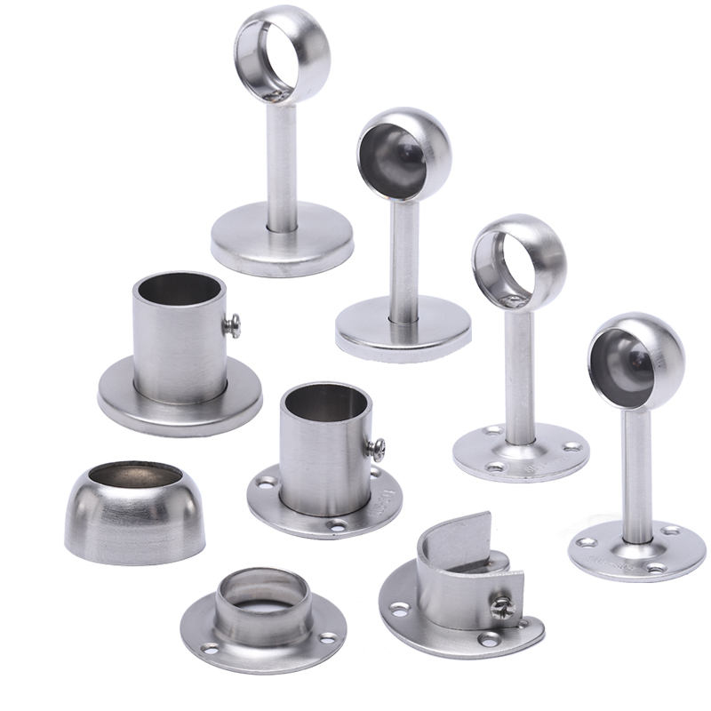 304 stainless steel round pipe flange cabinet hanger drying rod fixed accessories tube towel pole