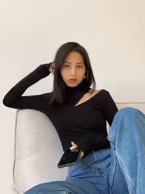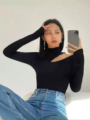 HUYIFAN black knitwear women design sense niche 2021 new long sleeve T-shirt female slim base shirt