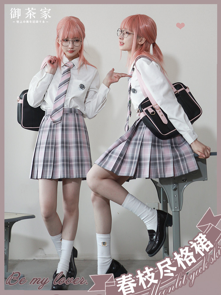 (Ochaya) Spring branch full grid skirt Original JK uniform Short medium long grid skirt Spring summer (spot)
