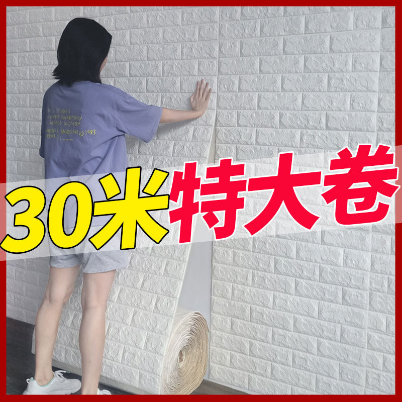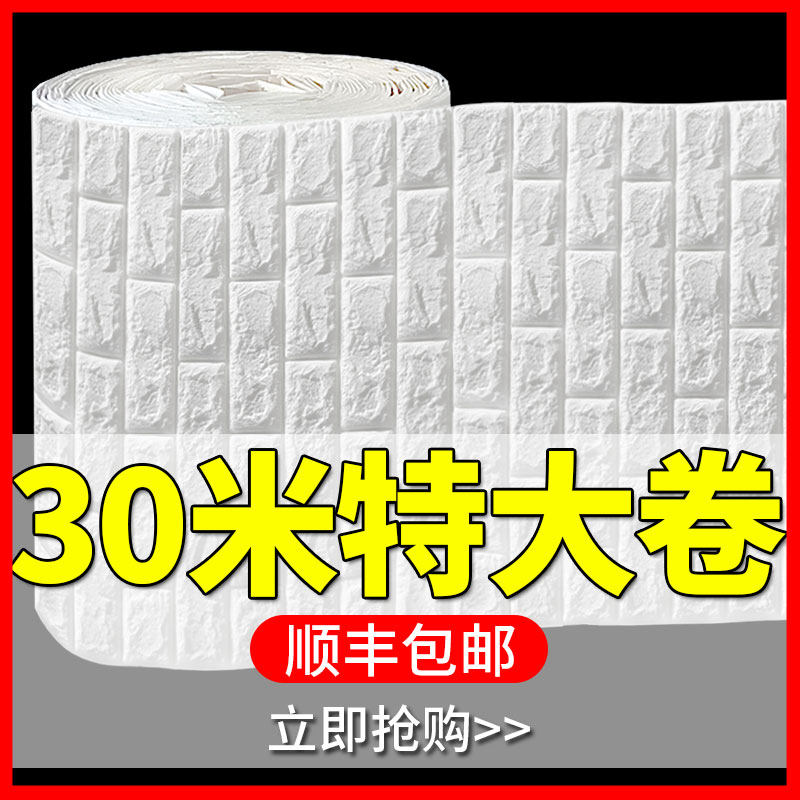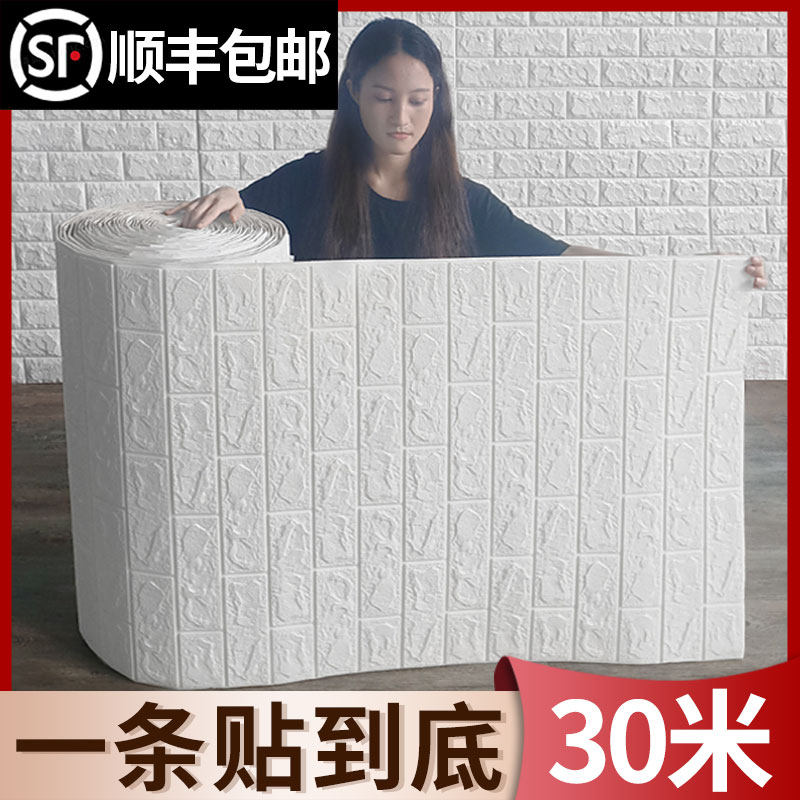 Wall paper roll self-adhesive wallpaper Home waterproof bedroom warm living room self-pasted 3D three-dimensional foam wallpaper wall sticker