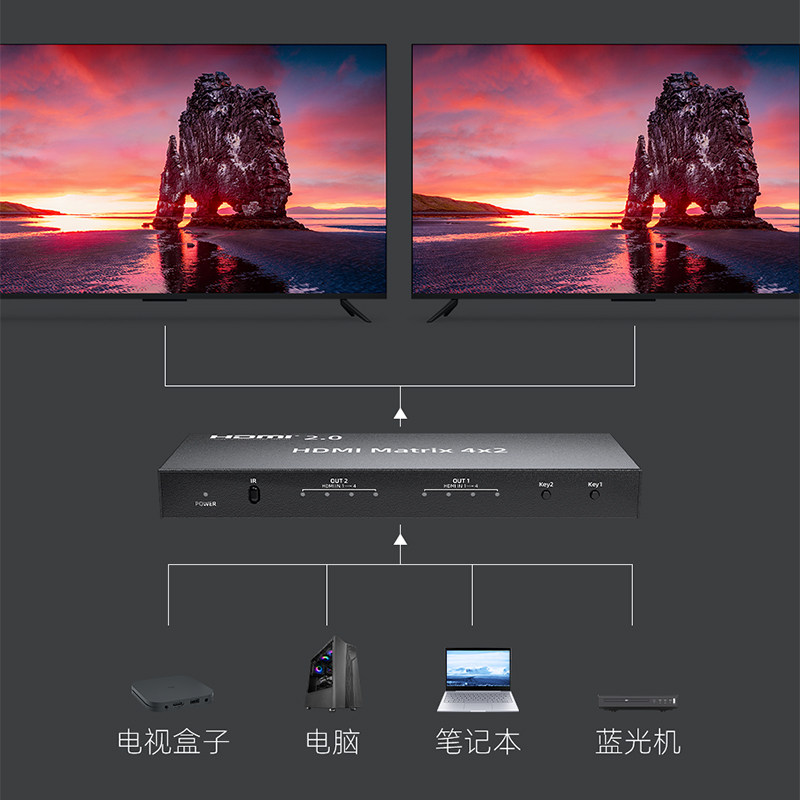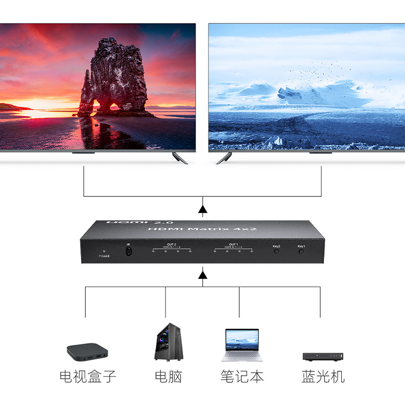 Zhenwei HDMI2 0 Matrix switcher 4 in 4 out 2 out of high-definition hdmi cut screen pen electric projector