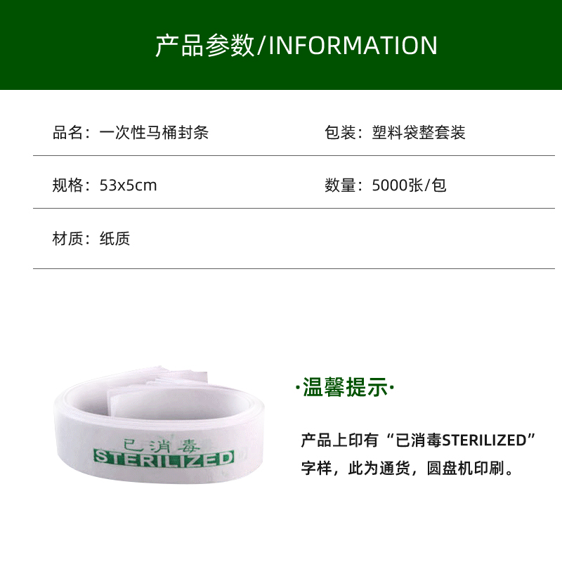 Hotel Guesthouse Disposable Sanitised Toilet Seal Guest Room Pure Color Internet Cafe Disinfection Label Tip