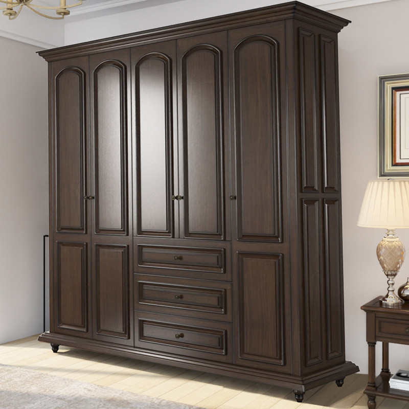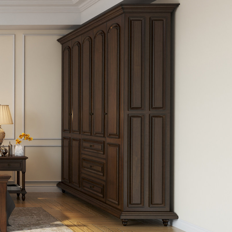 American pure solid wood wardrobe ash four-door solid wood wardrobe with top cabinet retro wardrobe bedroom six-door storage cabinet