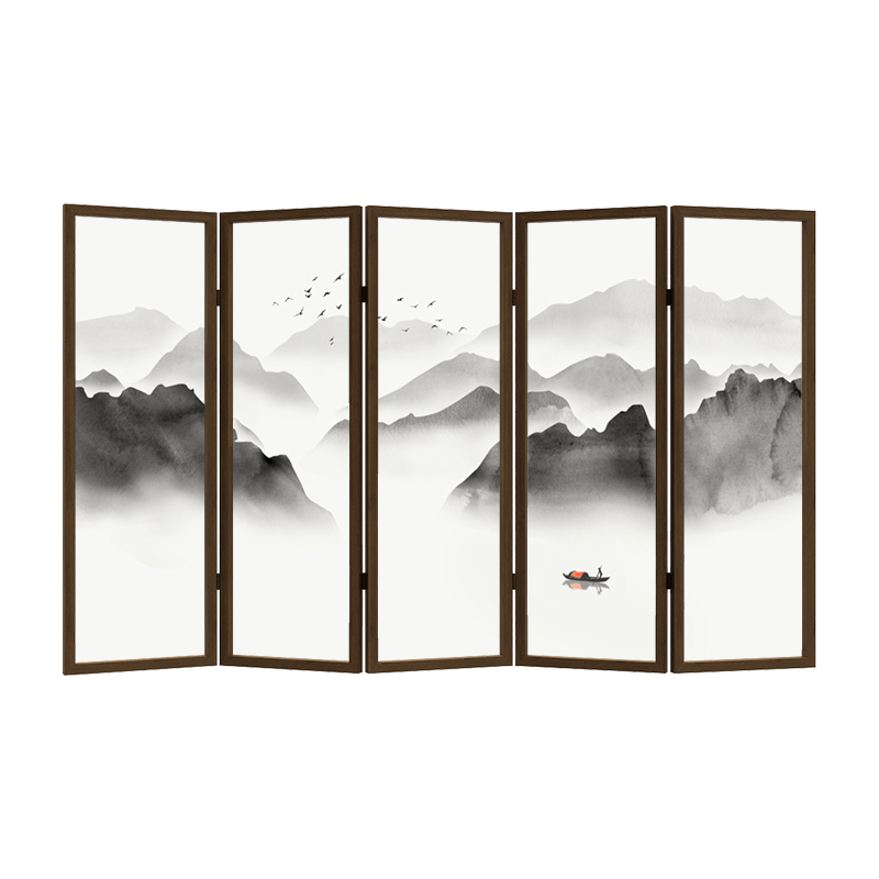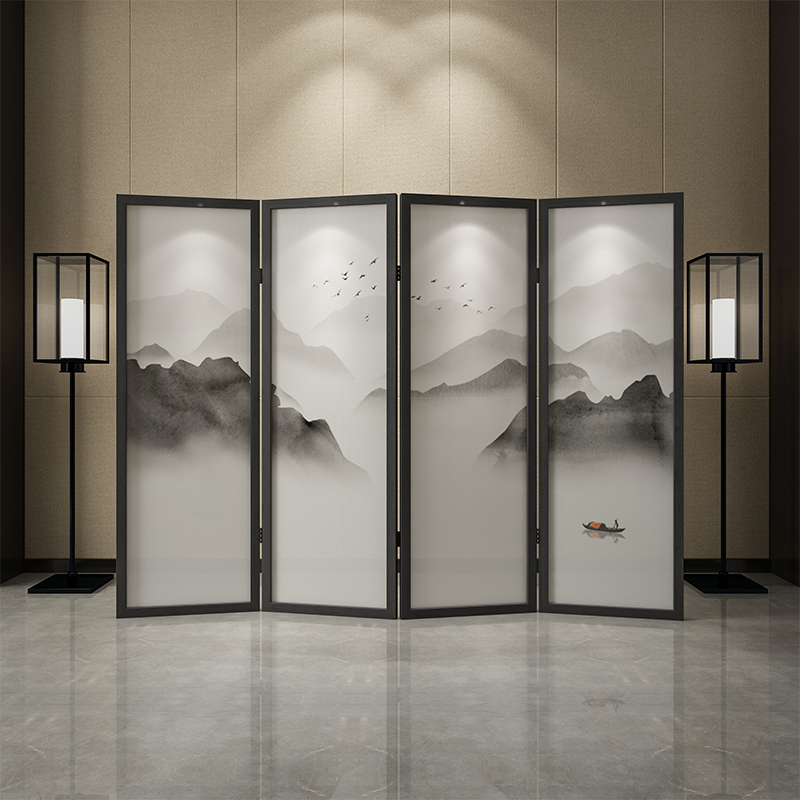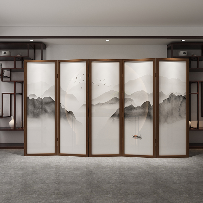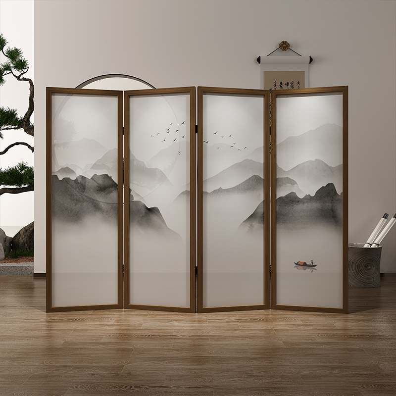New Chinese style landscape gathering wealth shade screen living room folding mobile solid wood simple modern entrance office folding screen