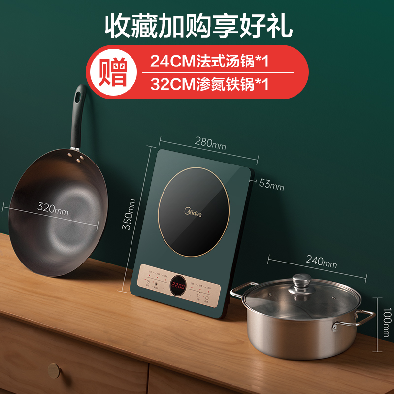 Midea new induction cooker set household cooking pot integrated small intelligent high-power energy-saving battery furnace