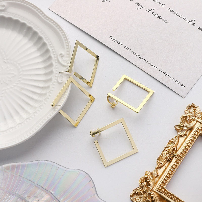 (298) square silver needle (298) square ear clip without earhole