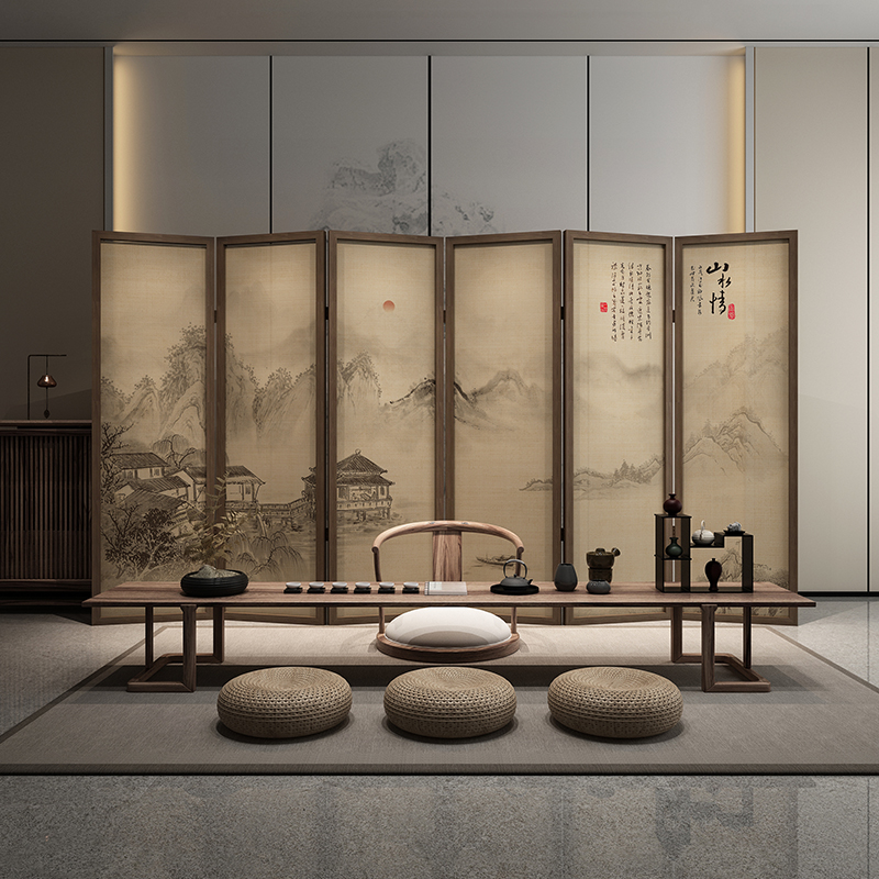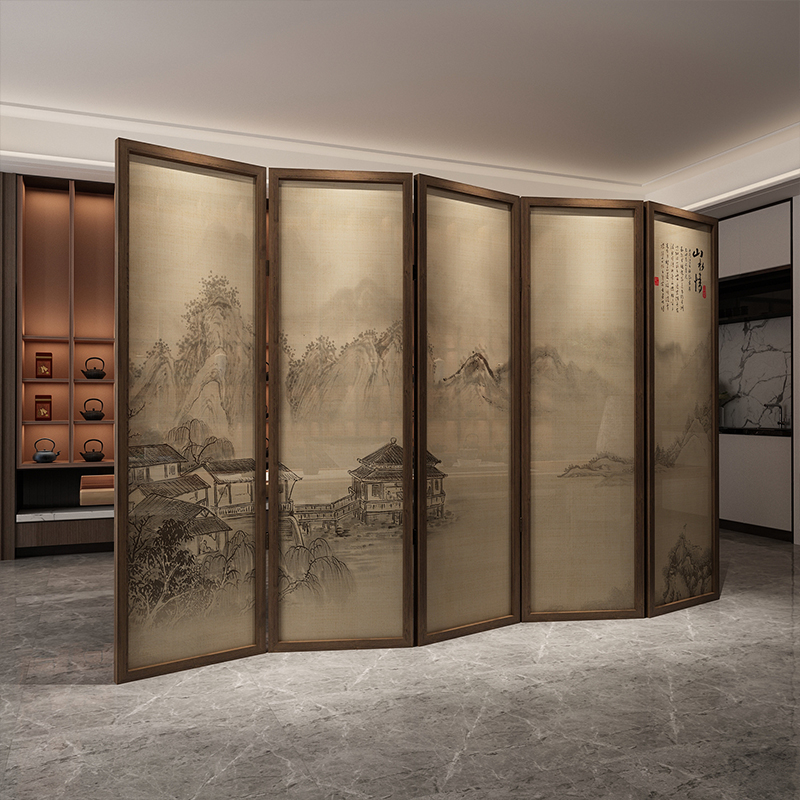Chinese style retro folding screen folding and shielding wall hotel landscape mobile Xuanguan Living room room bedroom solid wood folding screen