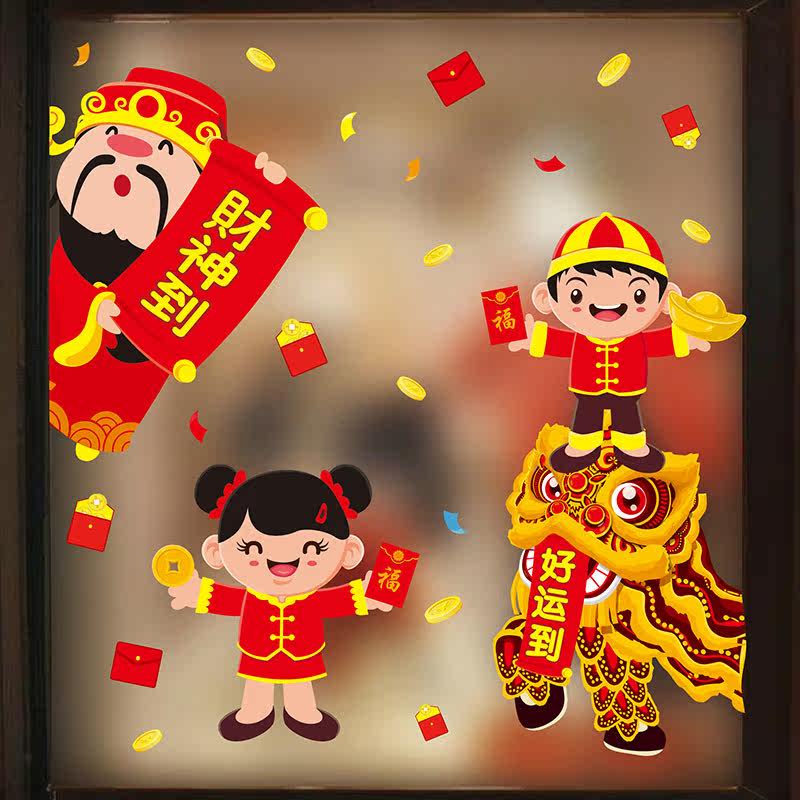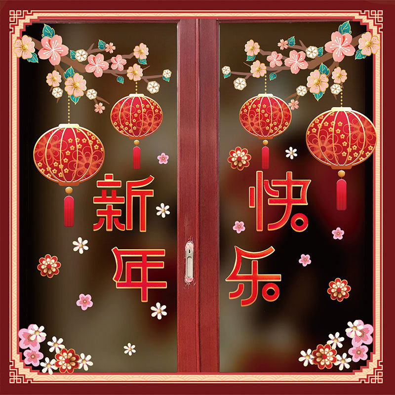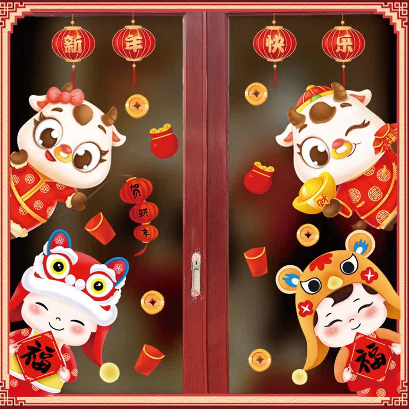 2021 New Year's decorative window applixwith Spring Festival Festive Windows Arrangement Glass Stickers New Year Happy Stickers Electrostatic Stickers