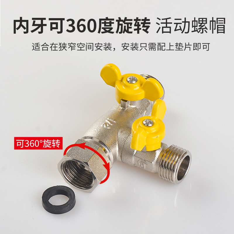 Live connection with switch three-way angle valve water pipe double control one in two out diverter joint four-way water distribution valve