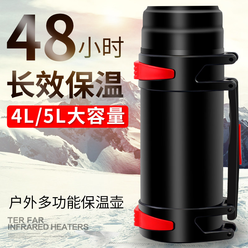 Outdoor fishing kettle thermal insulation large-capacity portable stainless steel large shoulder strap oblique cross mountain climbing to keep warm large camping