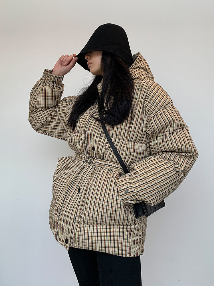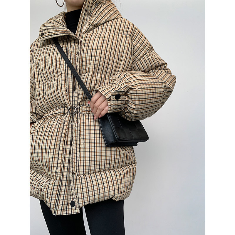 Ting Kou white goose down jacket women's 2022 winter small men's popular this year's popular puff plaid bread clothes off-season