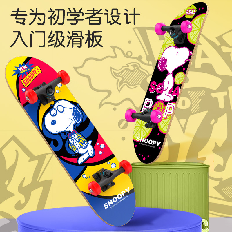 Snoopy skateboard beginners boys and girls teenagers four-wheel belt protective gear students double warped short board children's scooter