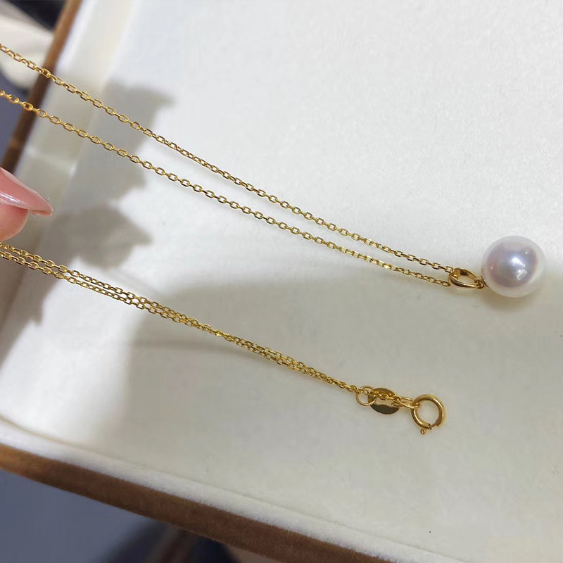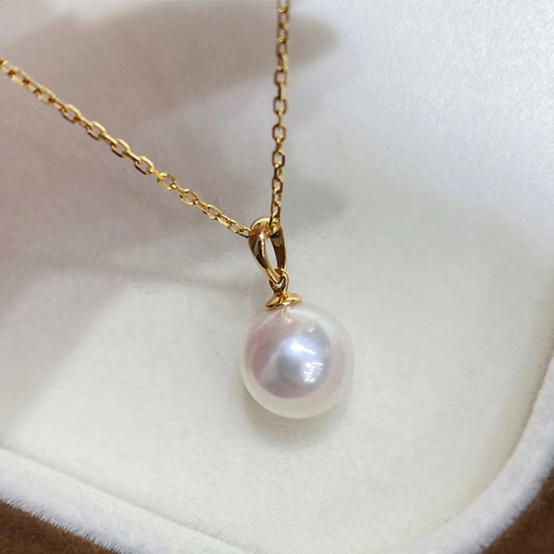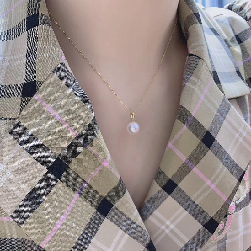 Extremely strong light Japanese akoya pendant single thick plate 18K melon seed buckle necklace natural seawater pearl necklace