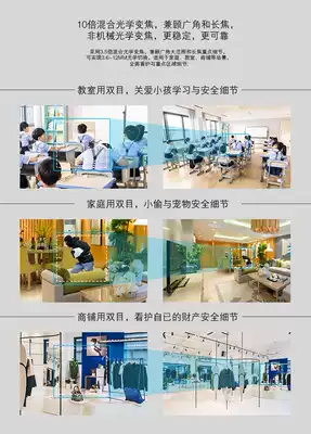 Indoor wireless WiFi mobile phone remote monitoring network dual camera 10x zoom HD night vision body tracking