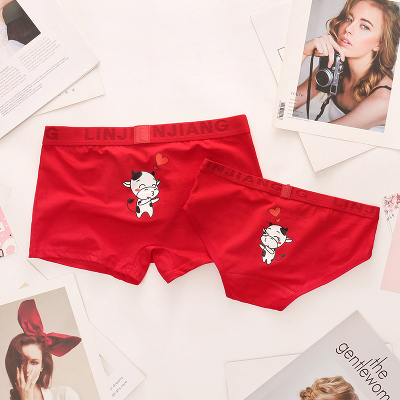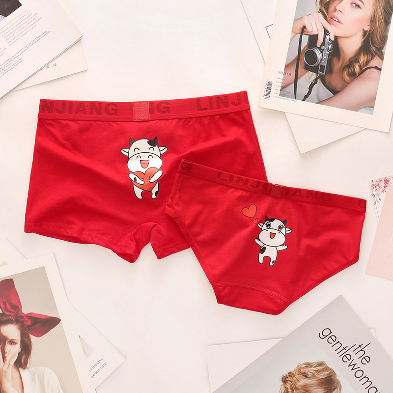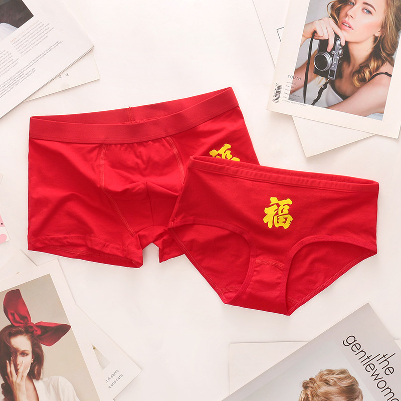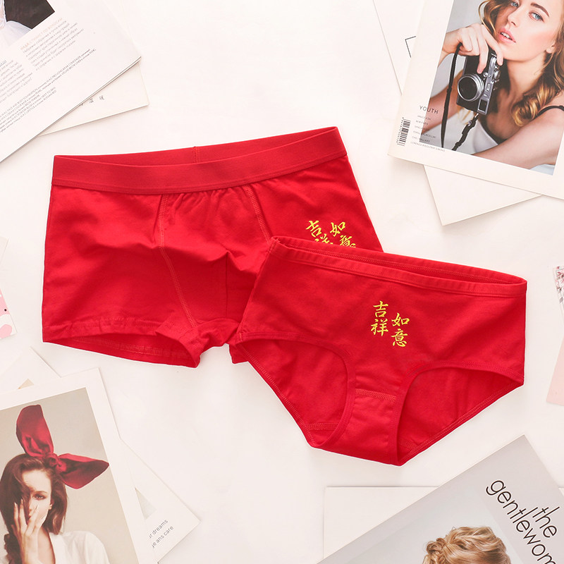 Tide brand 2 strips of couple panties pure cotton honmei year men and women double red underwear wedding bridal pair set