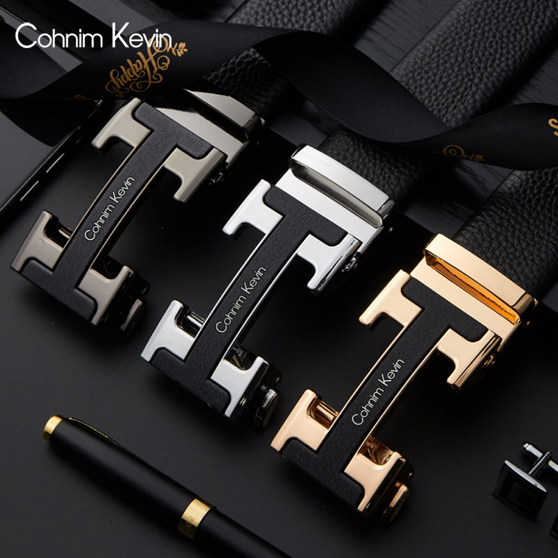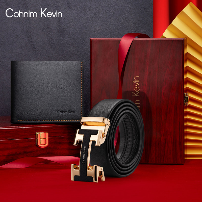 Cohnim Kevin men's belt leather automatic buckle gift box set simple and versatile to send to boyfriend on Qixi Festival