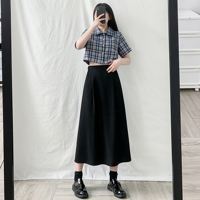 Large size half body dress pear shaped stature a long version of slightly fat girl wearing a hitch half skirt high-end commute