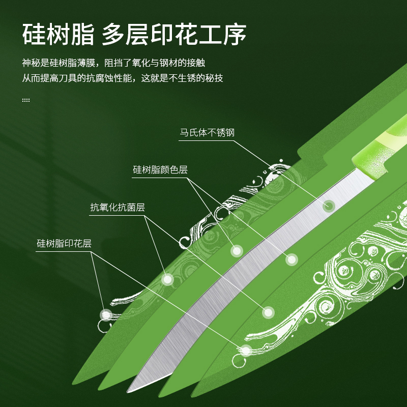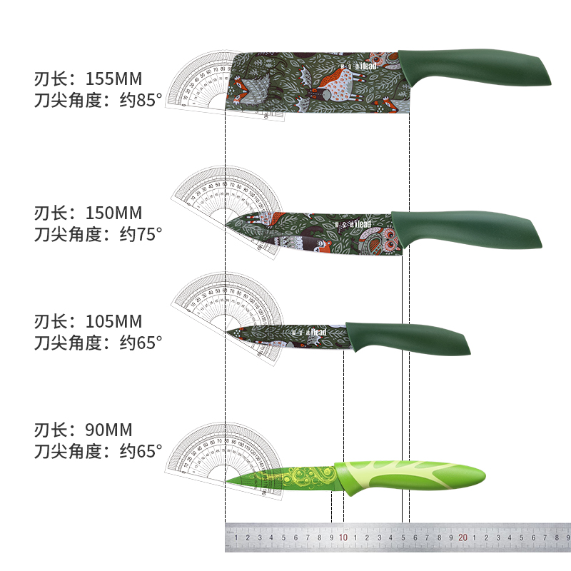 Seahorse water fruit knife-pink mushroom chef's knife (with knife set) seahorse water fruit knife-green