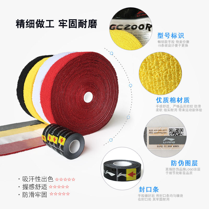 Li Ning thin large plate racket hand glue sweat non-slip sweat absorbing belt GC200R large plate towel glue GC100