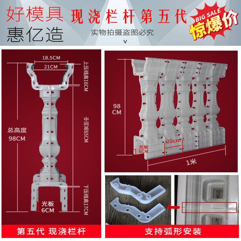 Roman column PP cast-in-place balcony Villa railing mold guardrail cement pillar square vase railing model building