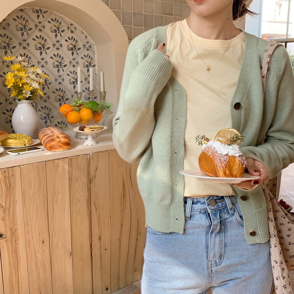 Minimum sea Han version Spring knit cardiovert jacket woman new 100 lap casual multicolored V collar single row buttoned sweater