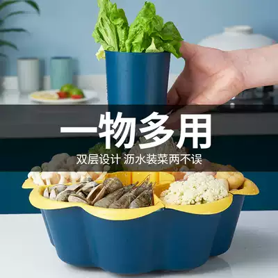 Hot pot ingredients pool household split plastic double-layer fruit washing basket Drain rotating hot pot vegetable platter
