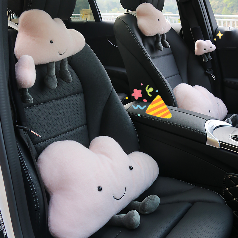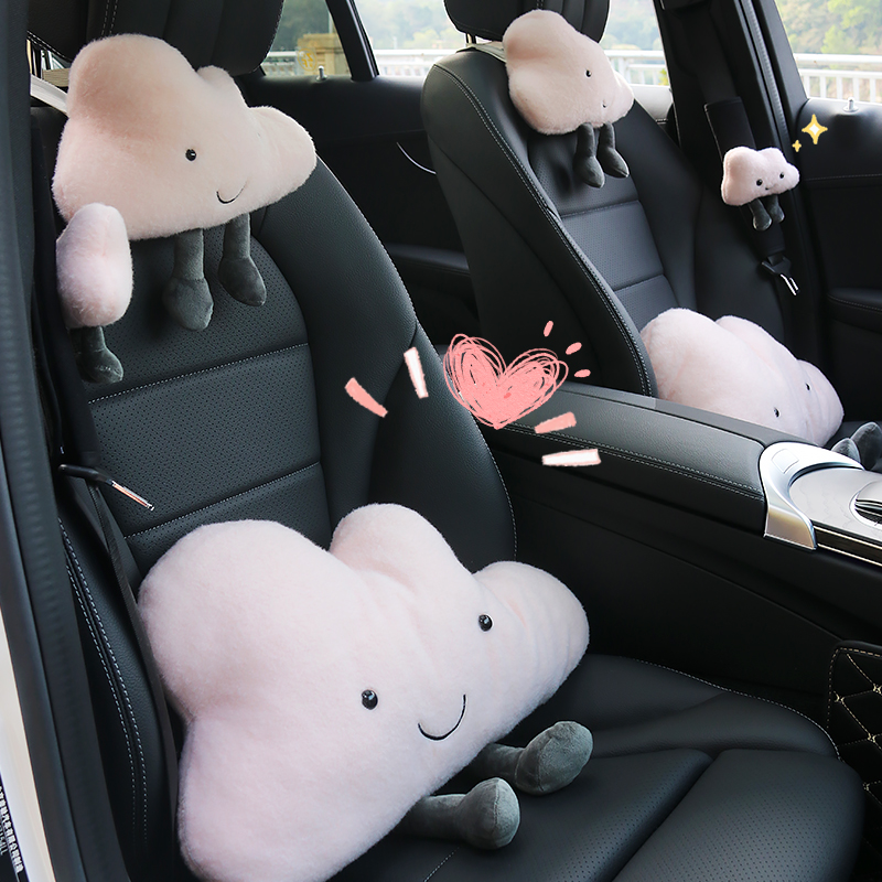 Cloud steering wheel cover-pink Cloud white waist rest Cloud steering wheel cover-white Cloud pink waist rest Cloud headrest Waist rest-white Cloud pink 6 pieces Cloud pink shoulder pads Cloud