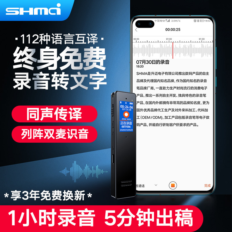 Shengmai T3 intelligent AI recording pen voice recording to text professional high-definition noise reduction long standby for class