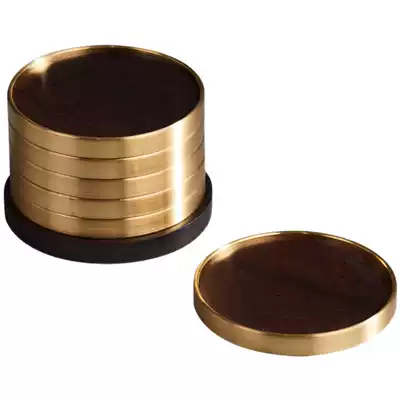 Xin Xuan) pure copper tea cup tray Ebony coaster household kung fu tea set tea ceremony accessories insulated tea mat 6 pieces