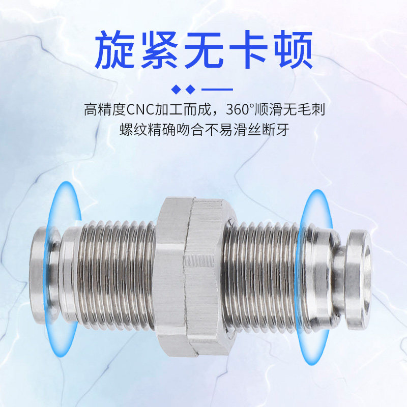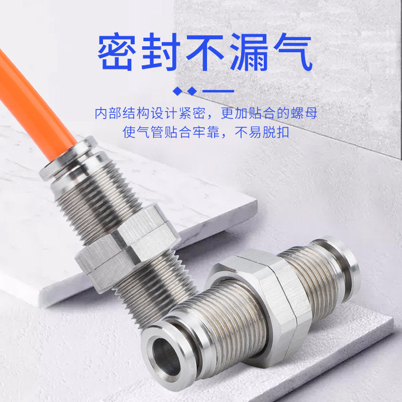 304 stainless steel air pipe fast insert joint resistant high pressure corrosion corrosion pipe plate straight through PM4 6 8 10 12