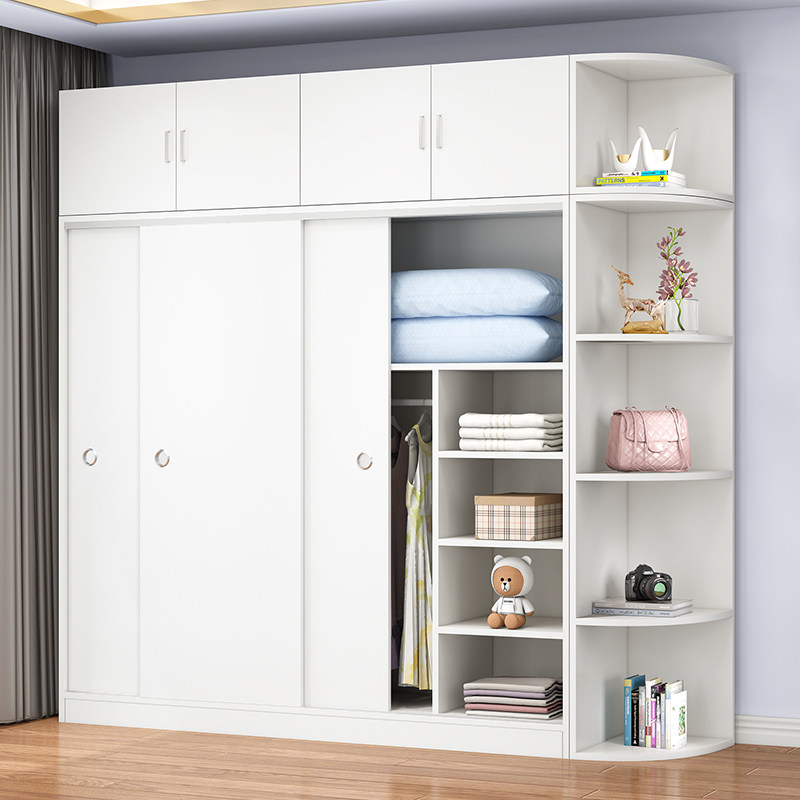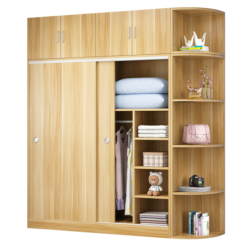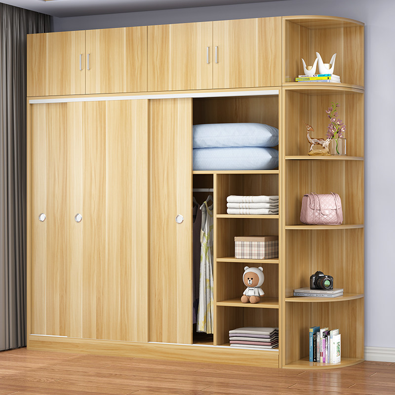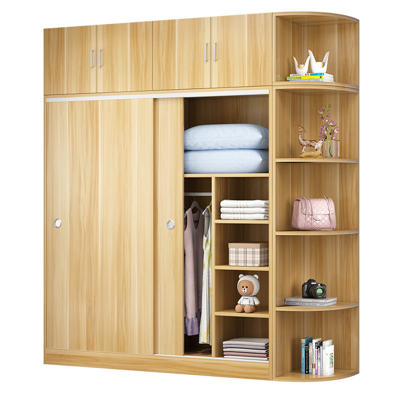 Wardrobe modern simple home bedroom simple wardrobe rental house with small type solid wood sliding door cabinet
