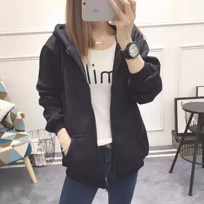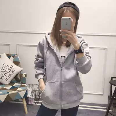 200 Jin can wear large size slim autumn winter sweater jacket zipper cardigan plus velvet thick cotton T female hooded top